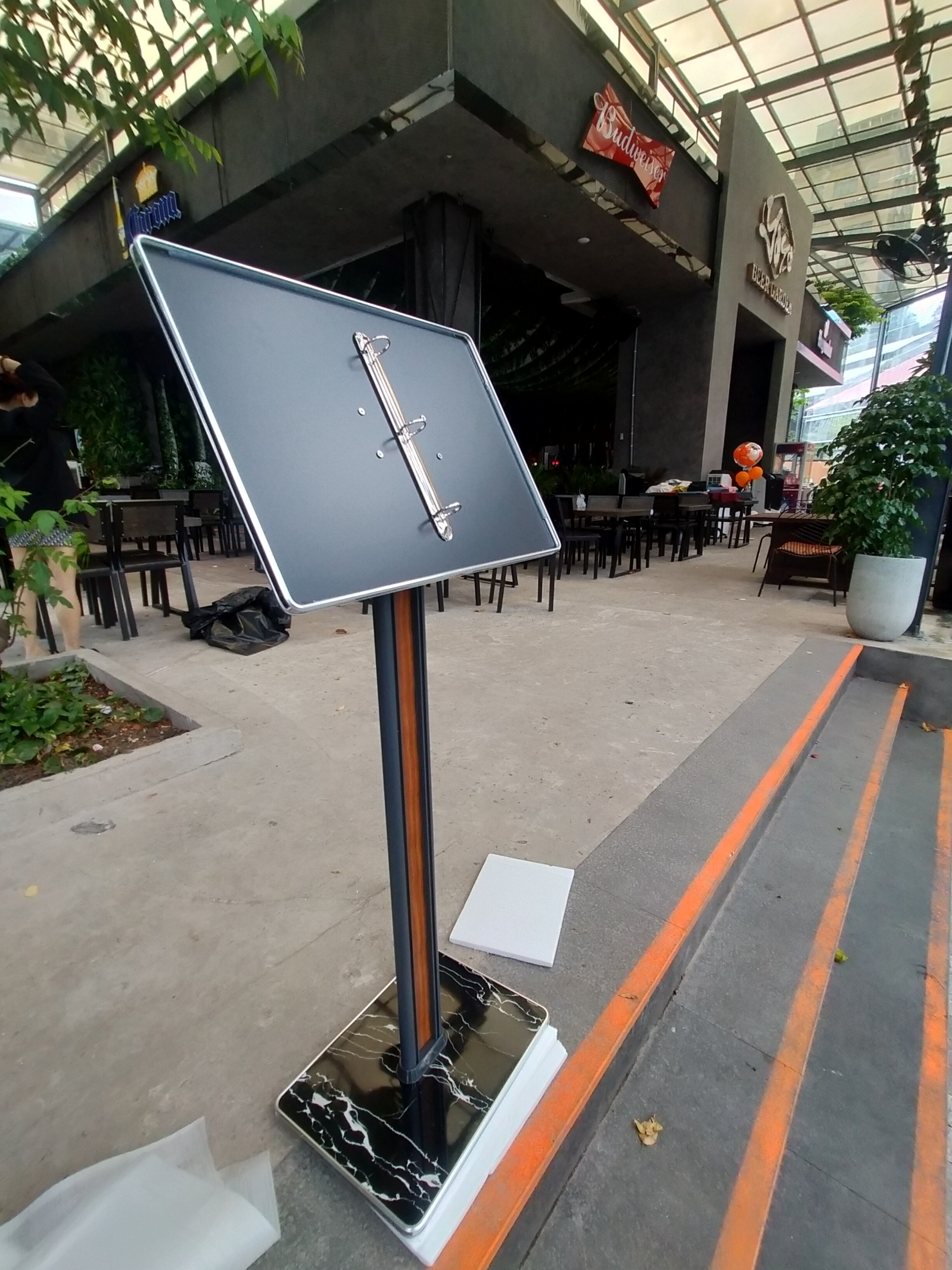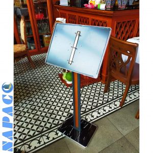 - Chân đế: Chân đế hình trụ vuông chắc chắn,mặt đế dày để bảng menu vẫn đứng vững trong điều kiện không gian ngoài trời.