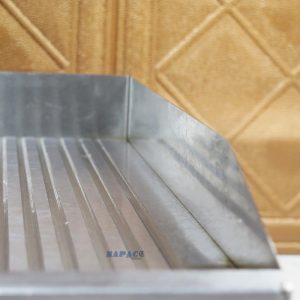Mặt bếp được thiết kế có ke lỗ thoát dầu, dẫn xuống hộc inox phía dưới, giúp thu gom dầu ăn dư, dầu cặn sau khi chiên nướng. Thiết kế này không chỉ tiện lợi mà còn giữ vệ sinh cho khu vực bếp.