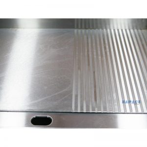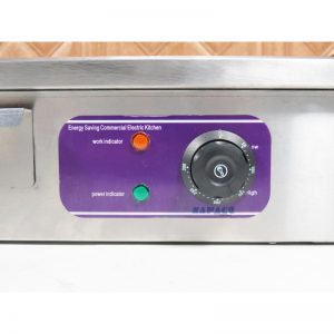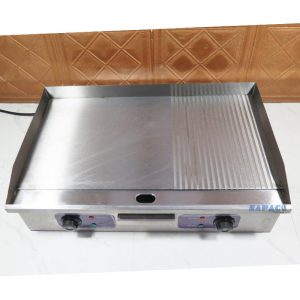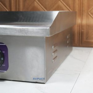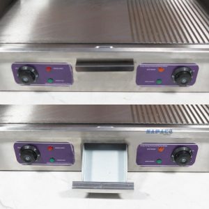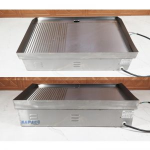 Mặt bếp được chia làm hai phần: 1 mặt trơn mịn giúp chiên trứng, bánh, bột chiên… và 1 mặt nhám chuyên dùng cho món như bò beefsteak, xúc xích hoặc thịt xông khói. Sự kết hợp này tối ưu hóa không gian nấu nướng, tiết kiệm thời gian và tăng hiệu quả phục vụ.