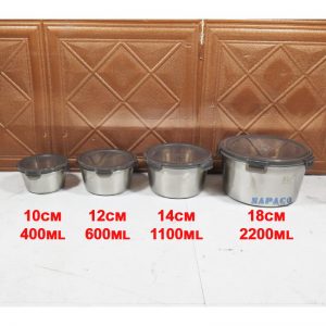 Bộ gồm: 4 hộp inox + 4 nắp nhựa chốt gài
