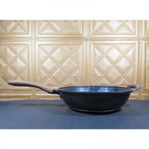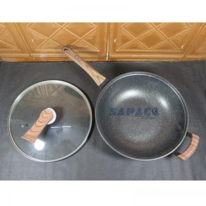 Cán chảo: Làm từ gỗ tự nhiên, chắc chắn, cách nhiệt, tăng tính thẩm mỹ và an toàn.