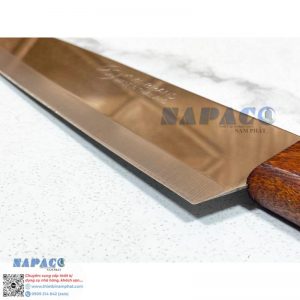 - Màu sắc nổi bật: Sự kết hợp giữa inox sáng bóng và cán gỗ tự nhiên tạo nên vẻ ngoài ấn tượng, mang lại sự chuyên nghiệp và sang trọng cho sản phẩm.