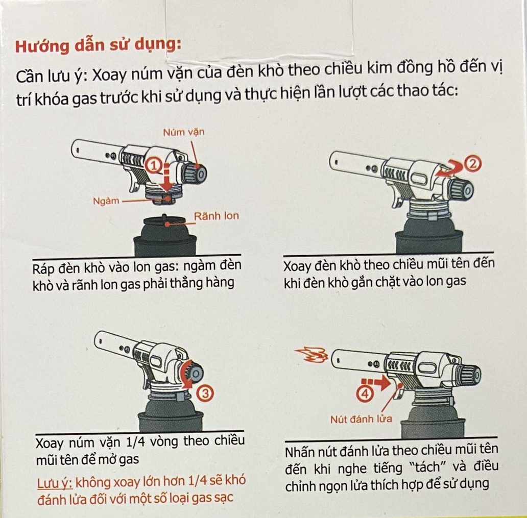 - Đèn khò gas, đánh lửa tự động, có thể điều chỉnh được nhiệt độ cũng như ngọn lửa nơi đầu khò.