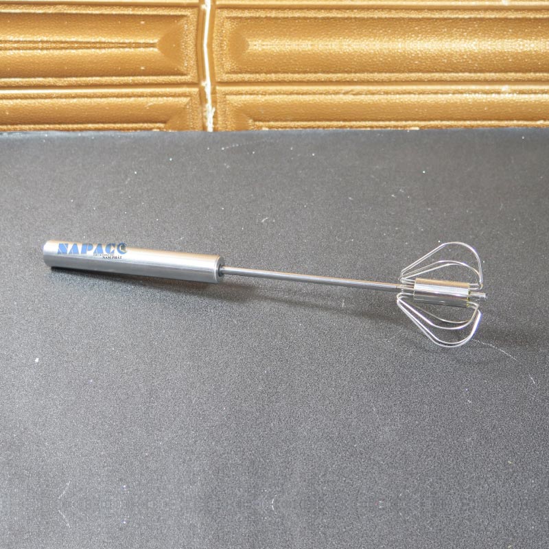 Điểm khác biệt lớn nhất của dòng sản phẩm Dụng Cụ Tạo Bọt Inox TB265 chính là cơ chế chuyển động vật lý tự động. Bạn không cần lắp pin, không cần dây điện rườm rà. Chỉ với một lực nhấn nhẹ vào tay cầm, đầu đánh sẽ tự động xoay tròn nhanh chóng, tạo ra lực ly tâm mạnh mẽ để trộn đều nguyên liệu.