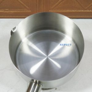 Điểm nổi bật là cán ngắn bằng inox đặc, giúp dễ cầm nắm, chắc chắn khi sử dụng trong thời gian dài mà không bị nóng tay hay lỏng lẻo. Thiết kế liền khối giữa thân và cán tăng độ bền, hạn chế bong rời hoặc rò rỉ.