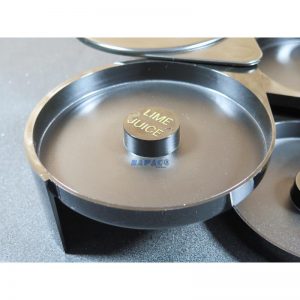 Ghi rõ nhãn từng ngăn (LIME JUICE, SALT, SUGAR) giúp dễ nhận biết, tránh nhầm lẫn trong quá trình pha chế. -