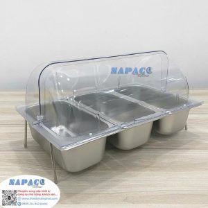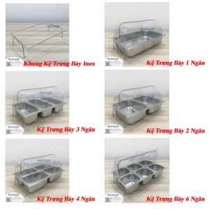 Kệ Trưng Bày Buffet Nắp PC 7001 chất liệu inox & nhựa PP cao cấp, thay đổi linh hoạt 1–6 ngăn, trưng bày trái cây, rau củ, bánh… dùng cho nhà hàng, khách sạn.