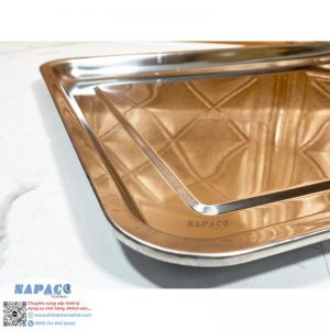 Khay có thể sử dụng an toàn trong quá trình nấu nướng hoặc lưu trữ thực phẩm nóng mà không lo ảnh hưởng đến chất lượng inox.