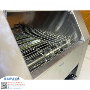 - Vỉ nướng được thiết kế theo dạng băng chuyền chạy giữa thanh nhiệt trên và thanh nhiệt dưới. Lúc này, đối lưu nóng sẽ nướng chín đều hai mặt bánh.