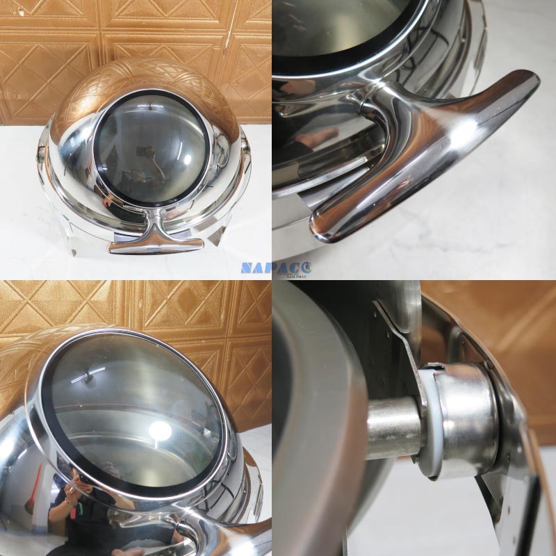 Ngay từ cái nhìn đầu tiên, Nồi hâm buffet tròn PC 126051L gây ấn tượng mạnh bởi chất liệu inox cao cấp được đánh bóng gương soi, phản chiếu ánh sáng cực tốt, tạo cảm giác sạch sẽ và cao cấp.