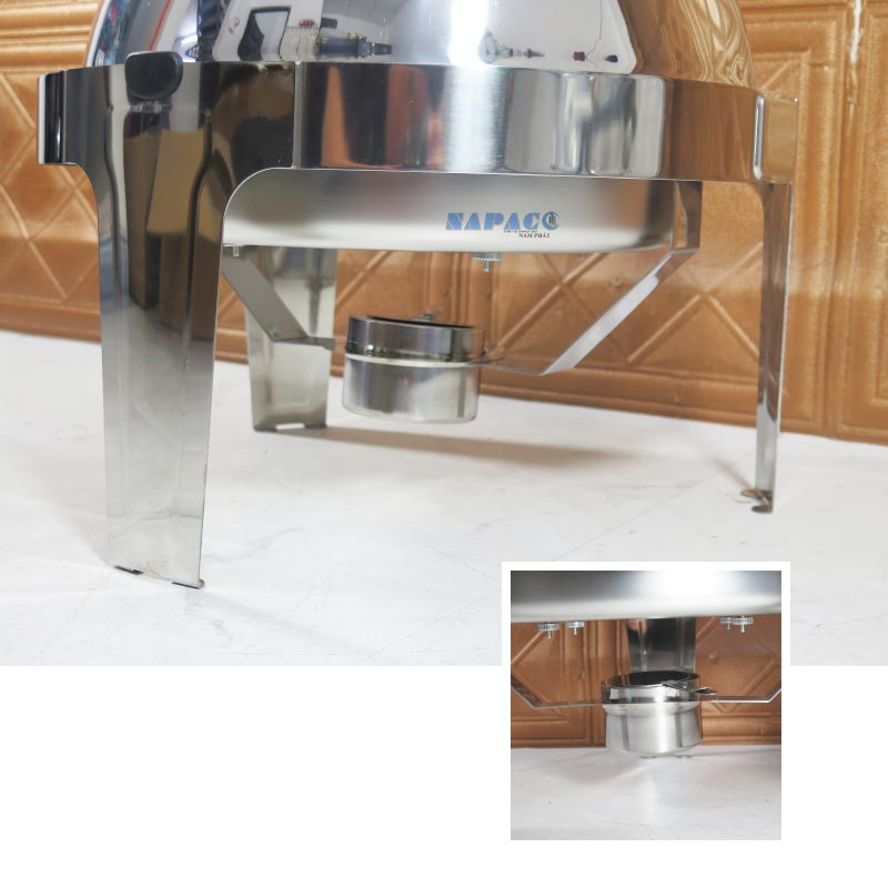 Cấu trúc 3 chân vững chãi: Thiết kế 3 chân trụ không chỉ tạo độ thoáng cho bàn tiệc mà còn đảm bảo sự chắc chắn tuyệt đối. Giữa các chân là vị trí đặt hũ cồn được tính toán kỹ lưỡng để tối ưu nhiệt lượng.