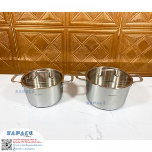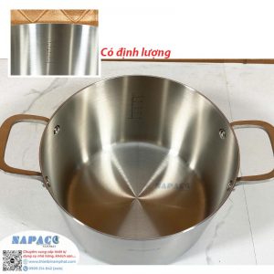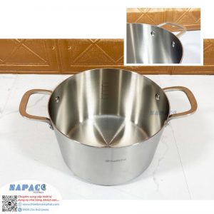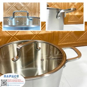 Cán và quai nồi được làm từ inox cao cấp, đảm bảo độ chắc chắn, không gây nóng tay khi cầm nắm.