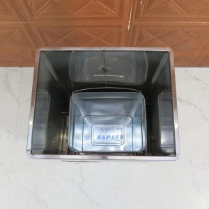 Thùng được làm từ inox không gỉ, có khả năng chống oxy hóa, chịu lực tốt và dễ lau chùi. Bề mặt sáng bóng giúp sản phẩm luôn giữ được vẻ mới và sạch đẹp dù sử dụng lâu dài.
