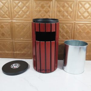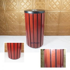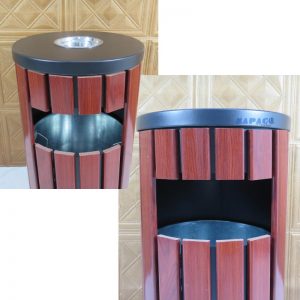 Thùng Rác Ngoài Trời A78-C, kích thước 400x760mm, thân ốp gỗ nhân tạo, khung sắt sơn tĩnh điện, nắp có gạt tàn, kèm thùng chứa rác bên trong, chắc chắn – bền đẹp.