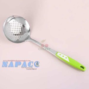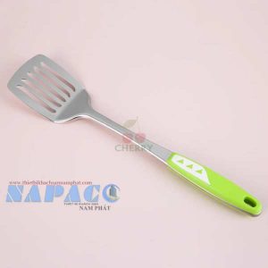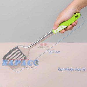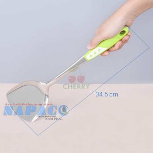 Vá sạn inox cán nhựa dài cách nhiệt màu xanh lá xào đảo thức ăn, thuận tiện Cherry