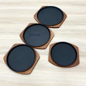 Đế gỗ không chỉ chống nóng khi đặt lên bàn, bảo vệ bề mặt bàn khỏi trầy xước và nhiệt độ cao, mà còn tạo điểm nhấn thẩm mỹ cho bàn tiệc. Chất liệu gỗ tự nhiên được xử lý chống mối mọt, đảm bảo độ bền lâu dài.