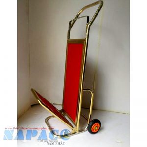 Xe đẩy hành lý chữ L NP-013 được mạ vàng, thích hợp cho các khách sạn, nhà hàng sử dụng để di chuyển hành lý của khách hàng.