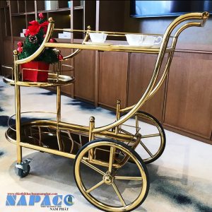 Xe đẩy hành lý chữ L tăng thêm sự sang trọng cho khách sạn và nhà hàng. Giúp tăng sự sang trọng cho nhà hàng của bạn. Sản phẩm được mạ vàng phù hợp cho các khách sạn, nhà hàng để đựng hành lý của khách hàng.’