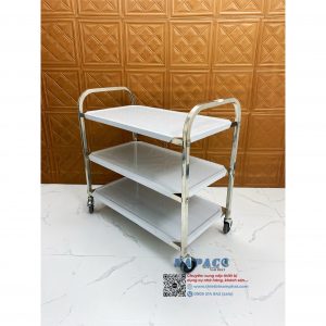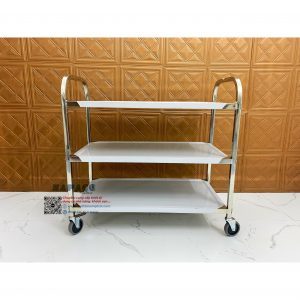Xe đẩy inox 3 tầng X1001 là loại xe đẩy tiện dụng phục vụ trong các nhà hàng, khách sạn giúp cho việc di chuyển thức ăn, hàng hóa cần thiết một cách dễ dàng và đảm bảo an toàn không lo bị đổ vỡ. Loại xe này được làm từ chất liệu inox sáng bóng trông rất sang trọng và lịch sự. Hiện dòng xe này đang phổ biến tại các quán ăn, nhà hàng tại Việt Nam.