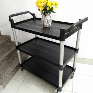 Xe đẩy phục vụ thức ăn 3 tầng L010B-2T màu đen là một loại xe đẩy được thiết kế để phục vụ thức ăn trong các sự kiện, như tiệc cưới, hội nghị, lễ kỷ niệm, hay các buổi tiệc buffet khác. Nó được gọi là “3 tầng” bởi vì nó có ba tầng khay hoặc giá để đặt đồ ăn.