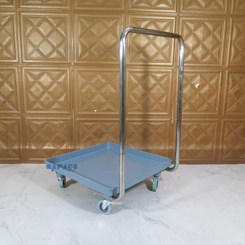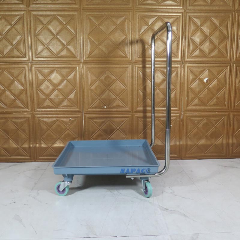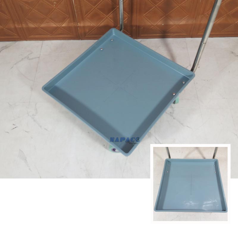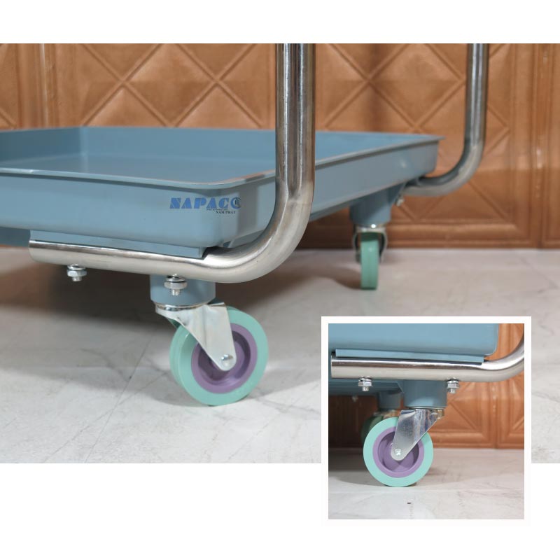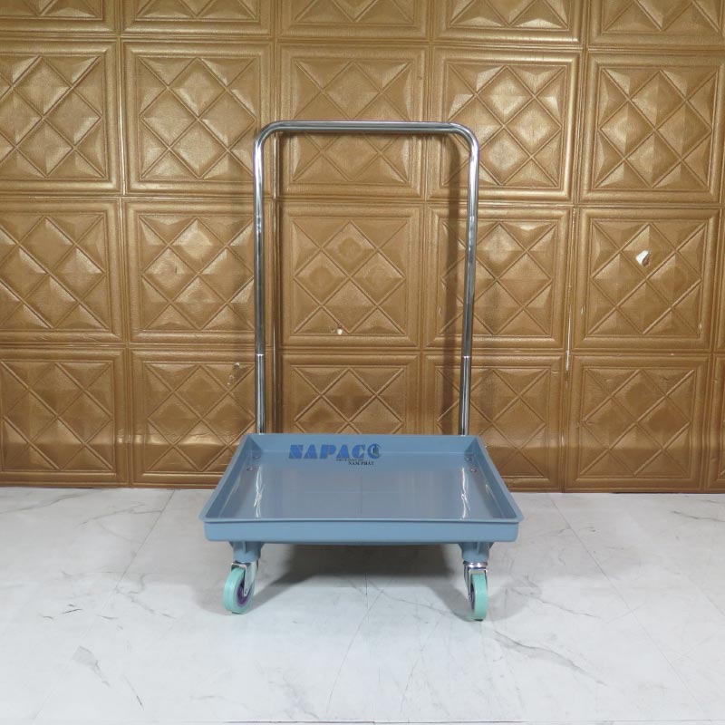 Thân Xe Bằng Nhựa Cao Cấp: Phần nền xe (rack dolly) được làm từ nhựa chuyên dụng, có khả năng chịu tải tốt, chống va đập và đặc biệt là không bị ảnh hưởng bởi nước, hóa chất tẩy rửa trong quá trình dọn rửa. Màu sắc trang nhã, sạch sẽ.