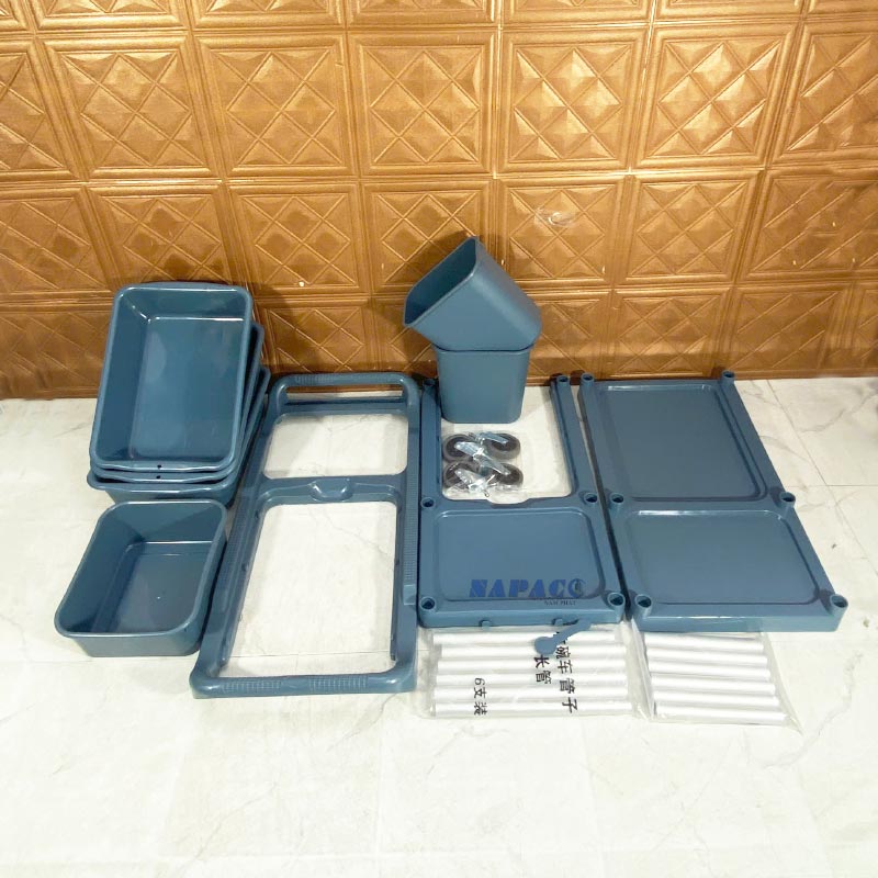 Các khay chứa được làm từ nhựa PP siêu bền, có khả năng chịu va đập và tải trọng lớn. Bề mặt nhựa nhẵn mịn, chống bám bẩn, giúp việc vệ sinh sau mỗi ca làm việc trở nên nhẹ nhàng hơn bao giờ hết. Màu xám xanh sang trọng giúp “che đi” những vết bẩn tạm thời, giữ được hình ảnh sạch sẽ trong mắt khách hàng.