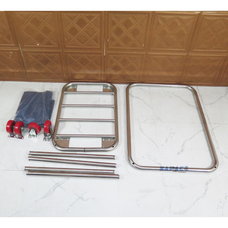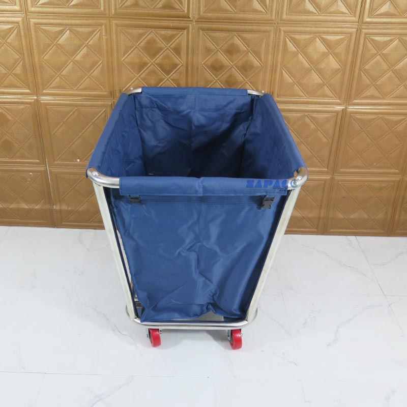 Xe dọn đồ dơ C-40 làm từ inox 201 chắc chắn, túi vải xanh tháo rời tiện lợi, 4 bánh xe linh hoạt. Phù hợp cho nhà hàng, khách sạn, đơn vị giặt ủi chuyên nghiệp.